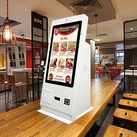 Siparişlerin termal baskı ile 32 inç çift ekran çoklu kapasitif dokunmatik Self servis Online gıda sipariş ödeme Kiosk